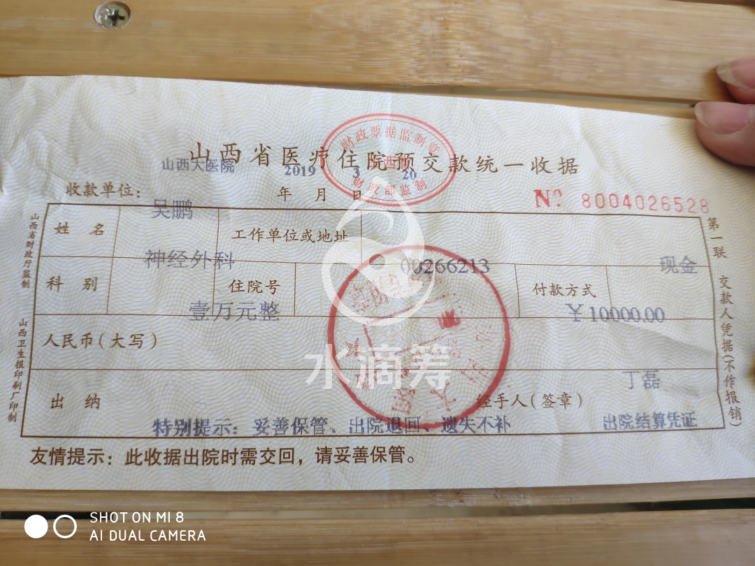 2019年03月20號(hào)凌晨,弟弟在凌晨回家途中不幸發(fā)生車禍,然后120救護(hù)車緊急把弟弟送到太谷縣人民醫(yī)院搶救,但是因?yàn)閭麆?shì)嚴(yán)重而且當(dāng)?shù)氐尼t(yī)療設(shè)備局限,連夜又轉(zhuǎn)到了山西大醫(yī)院搶救,在急救室搶救了一天,現(xiàn)在轉(zhuǎn)到重癥監(jiān)護(hù)室。弟弟現(xiàn)在身體多處骨折,面部骨折還有其他的一些病狀。弟弟平時(shí)是一個(gè)特別好的人,現(xiàn)在面對(duì)這個(gè)突如其來(lái)的天災(zāi)人禍,我們?nèi)叶伎嗖豢把浴?br /> 吳鵬生活在一個(gè)單親家庭,我們姐弟兩個(gè)都是靠母親辛苦拉扯長(zhǎng)大,母親為了我們辛苦了一輩子,都沒(méi)有享過(guò)福,現(xiàn)在弟弟又發(fā)生意外,這讓我們這個(gè)本身就貧困的家庭更是雪上加霜。僅僅一天時(shí)間,前期費(fèi)用我們已花費(fèi)了超過(guò)50000元,醫(yī)生說(shuō)后續(xù)的治療費(fèi)用還很大,而且旁邊的病友家屬的花費(fèi)都非常的大。大概估算了,最少還需要400000元,這個(gè)數(shù)字對(duì)我們來(lái)說(shuō)實(shí)在壓力有點(diǎn)大,前期治療的費(fèi)用就已經(jīng)花了家里很多錢,親戚朋友雖然都在盡力幫忙但還是差很多,但是我想救我的弟弟啊,他還沒(méi)有成家,他還這么年輕,還沒(méi)來(lái)得及孝順母親!
