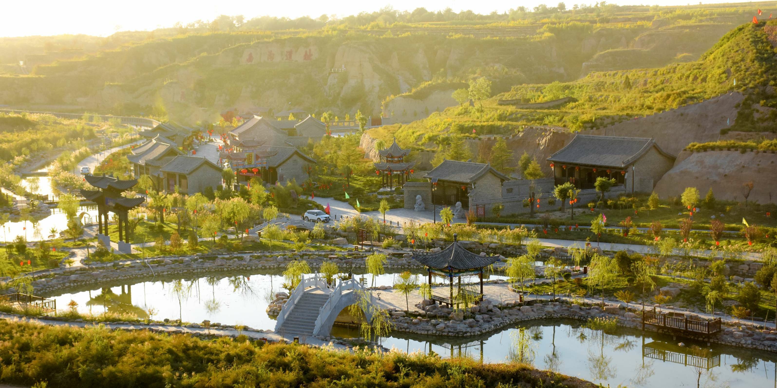 朝陽(yáng)溝位于曲沃縣里村鎮(zhèn)朝陽(yáng)村南滏河河道,總占地2000余畝,總投資6000余萬(wàn)元,景區(qū)內(nèi)地勢(shì)蜿蜒,土地肥沃,水資源豐富,區(qū)域內(nèi)有省重點(diǎn)保護(hù)的“里村西溝遺址”“晉源寺遺址”“龍王廟遺址”“百年松柏”“恐龍化石”“猛犸象化石”以及抗戰(zhàn)時(shí)期的備戰(zhàn)窯洞、地道等歷史珍貴遺產(chǎn)。目前已完成了路基拓寬、道路硬化、山體綠化、渠道整修、開挖餐飲窯洞和蓮魚共養(yǎng)池、修建休閑觀光亭和停車場(chǎng)等基礎(chǔ)設(shè)施建設(shè)。同時(shí),以歷史時(shí)間為軸形成了“四區(qū)”“十景”的景區(qū)格局。四區(qū):指遠(yuǎn)古群落區(qū)、農(nóng)耕體驗(yàn)區(qū)、明清古建區(qū)、現(xiàn)代休閑區(qū);“十景”:指西溝遺址、農(nóng)耕體驗(yàn)園、古縣衙、古驛站、石牌坊、觀景亭、竹林迷宮、石橋景觀、蓮魚共養(yǎng)池、休閑垂釣園。在這里可以探尋遠(yuǎn)古人類的神秘蹤跡,又能體驗(yàn)歸園田居的農(nóng)耕生活,還能品嘗到最地道的農(nóng)家風(fēng)味小吃。
