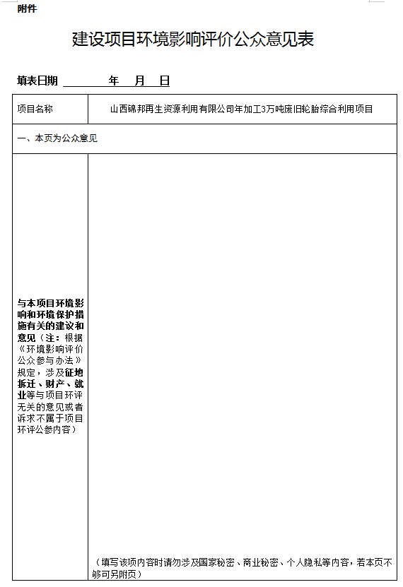 山西錦邦再生資源利用有限公司年加工3萬(wàn)噸廢舊輪胎綜合利用項(xiàng)目 環(huán)境影響評(píng)價(jià)公眾參與第一次信息公示