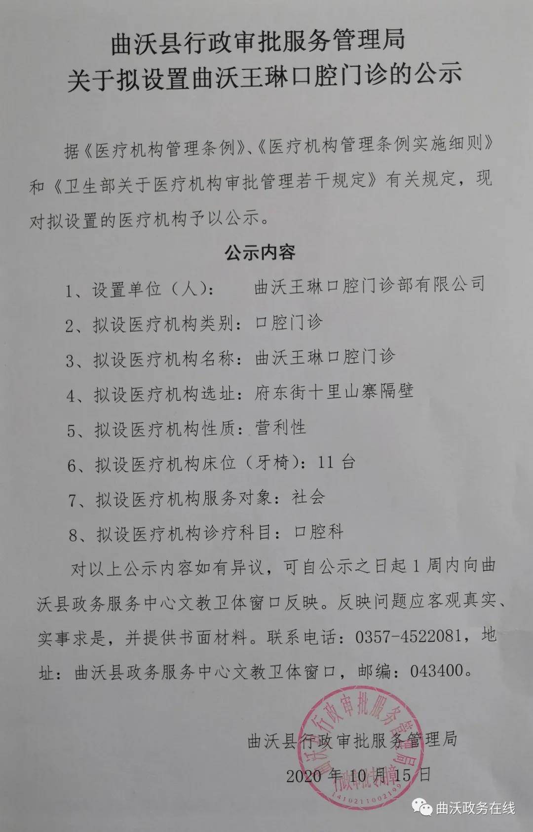 3、擬設(shè)醫(yī)療機(jī)構(gòu)名稱:曲沃王琳口腔門診