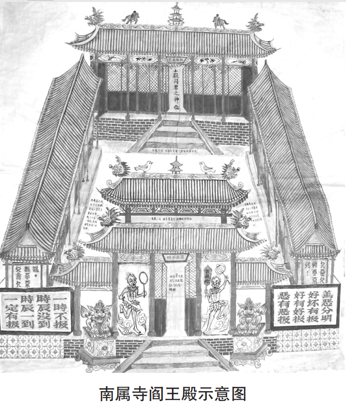南屬寺村的先祖?zhèn)儗⑹铋愅蹙丛诖髲R北大殿中,并在兩側(cè)偏殿建起天堂和地獄,就是要詔告人們永遠(yuǎn)不忘積德行善,切莫害人害己,時(shí)刻牢記:善有善報(bào),惡有惡極,天理昭昭,天網(wǎng)恢恢,神道永存,報(bào)應(yīng)無(wú)爽。