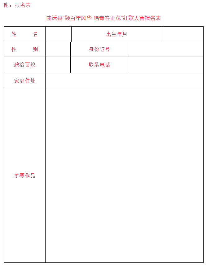 曲沃縣文化和旅游局“頌百年風(fēng)華 唱青春正茂”紅歌大賽活動公告