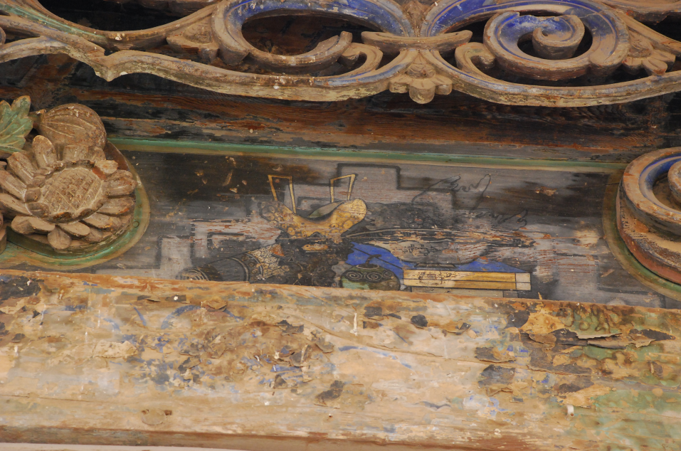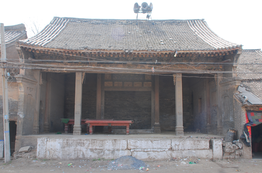 楊莊戲臺(tái),位于曲村鎮(zhèn)楊莊村中??h級(jí)文物保護(hù)單位。據(jù)戲臺(tái)樑脊板記載:始建于清代,道光七年(1827)維修。戲臺(tái)座北向南,面闊三間,進(jìn)深兩間,兩側(cè)有化裝樓閣三間,占地面積145平方米。附屬文物有碣18塊。楊莊戲臺(tái)單檐硬山頂,有石柱四根,石柱上有對(duì)聯(lián)一幅“此曲祗直天上有,斯人莫道世上無(wú)”,橫書(shū)“穆愉飛翠”。保存完整。