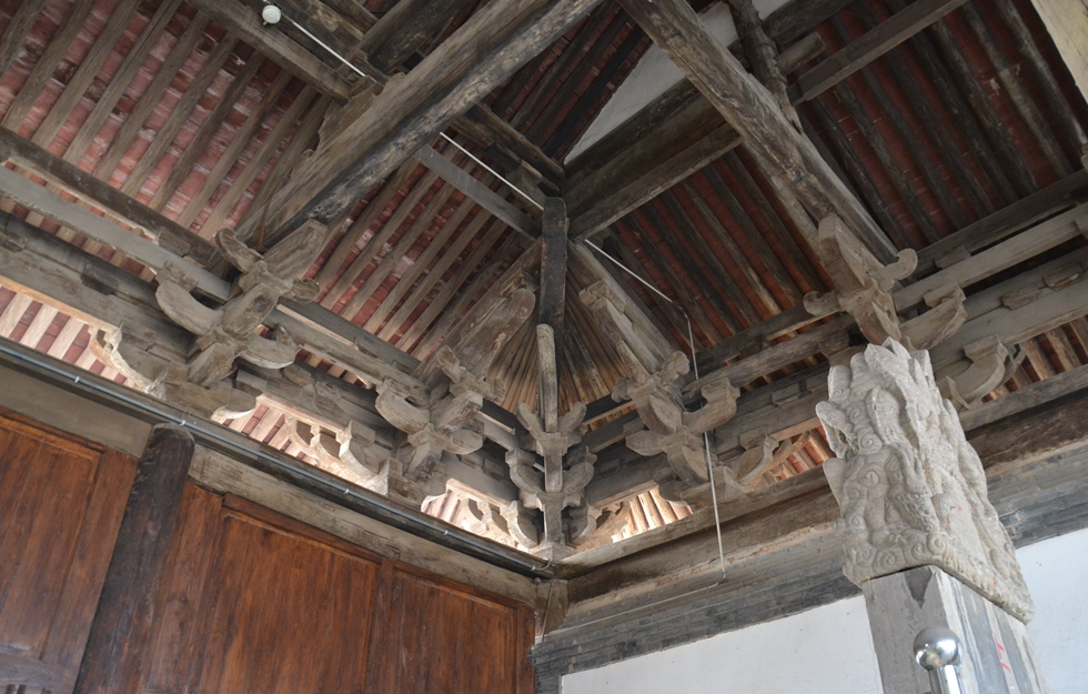 大悲院獻(xiàn)殿面闊三間,進(jìn)深三間,梁架三椽柎對(duì)三椽柎,殿內(nèi)用中柱,單檐歇山灰瓦頂。柱頭,補(bǔ)間斗拱五鋪?zhàn)?,琉璃脊剎.吻獸,整體設(shè)計(jì)科學(xué),結(jié)構(gòu)嚴(yán)謹(jǐn),對(duì)于研究我國(guó)宋金時(shí)期建筑的結(jié)構(gòu)法式具有很高的科學(xué)價(jià)值。